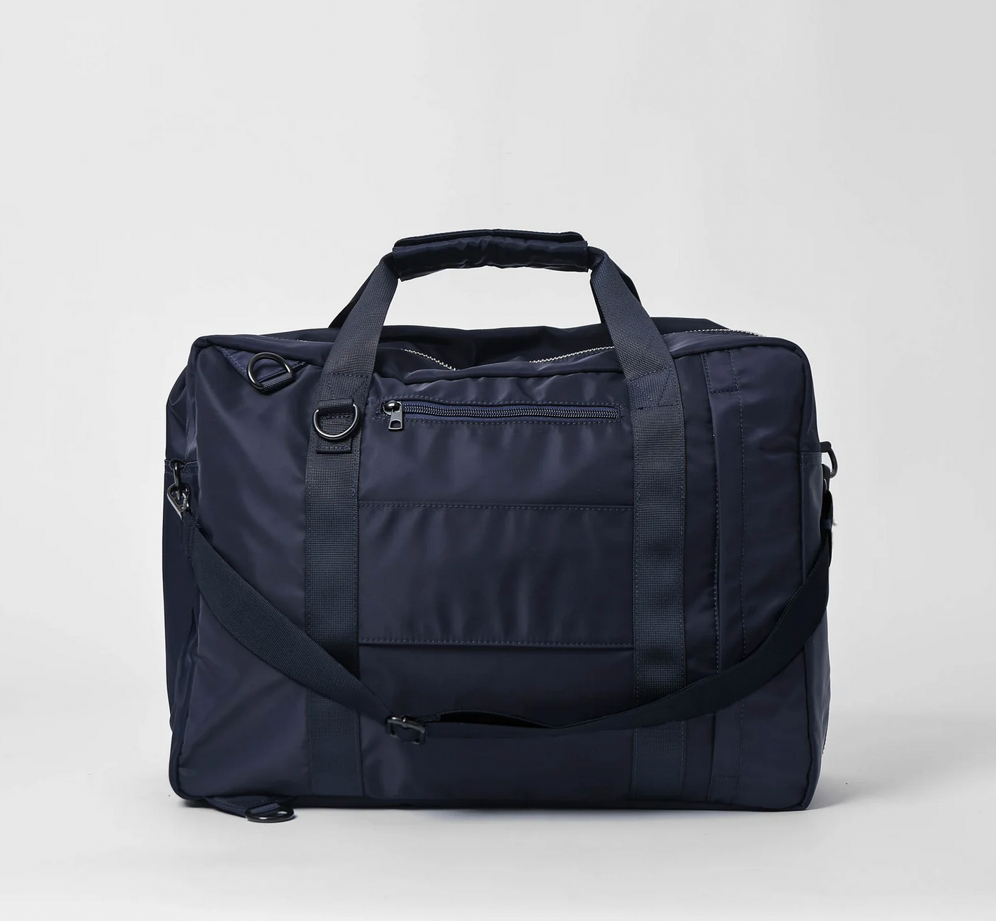 Elevate your travel with AY Studios' water-resistant, Danish-designed recycled nylon bags, complete with high-quality zippers tailored for the modern traveller. It opens up as a suitcase where you can organize all your things for the travel. It also has a trolley sleeve, computer sleeve, and easy-access pocket on the outside for your passport, boarding pass, etc. Besides that, it has hideable back straps so you can put it on your back. Size: 48 x 35 x 21 cm. 35 liters.