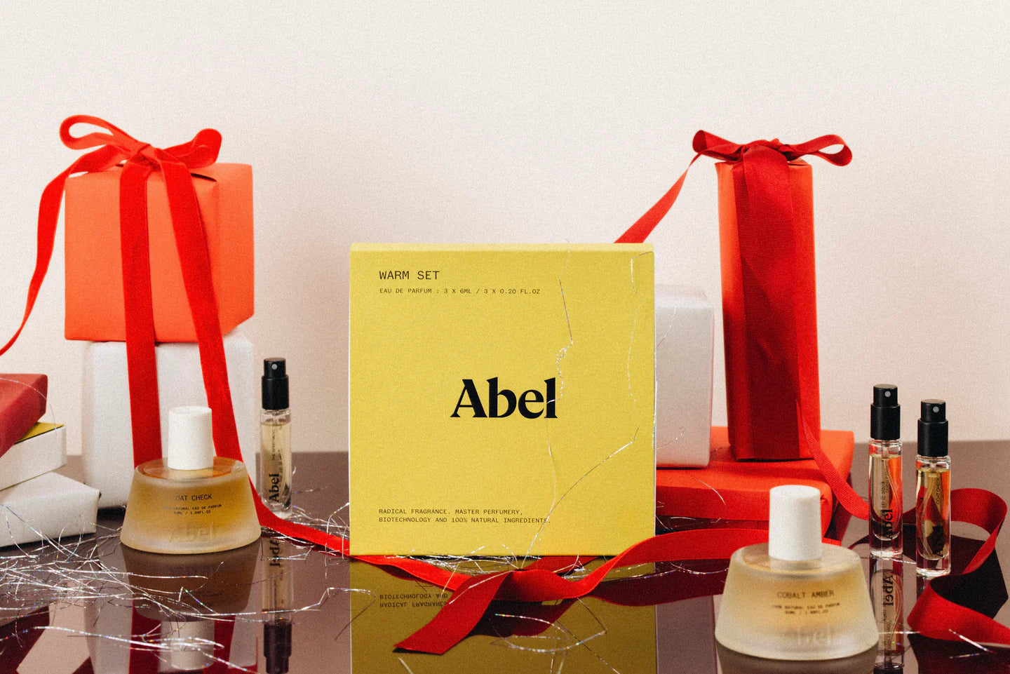 Velvet textures and tart cherry. Resinous, oozing amber. Dark, smoky and intense. A trio of warm scents, packaged in a deluxe holiday gift box.