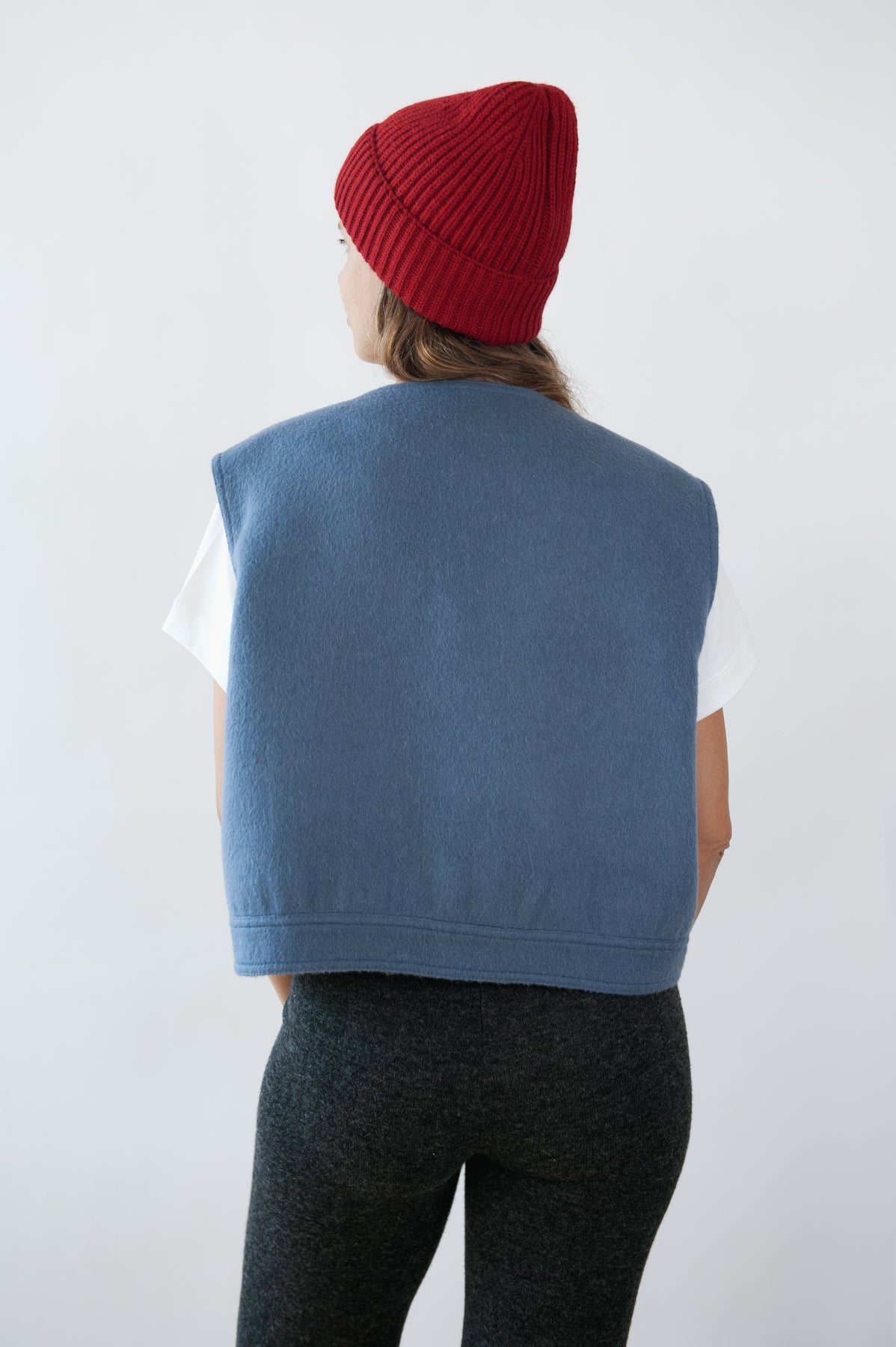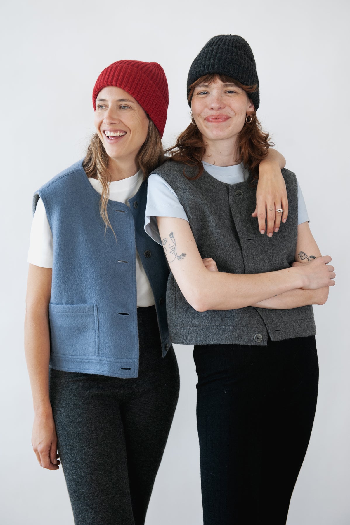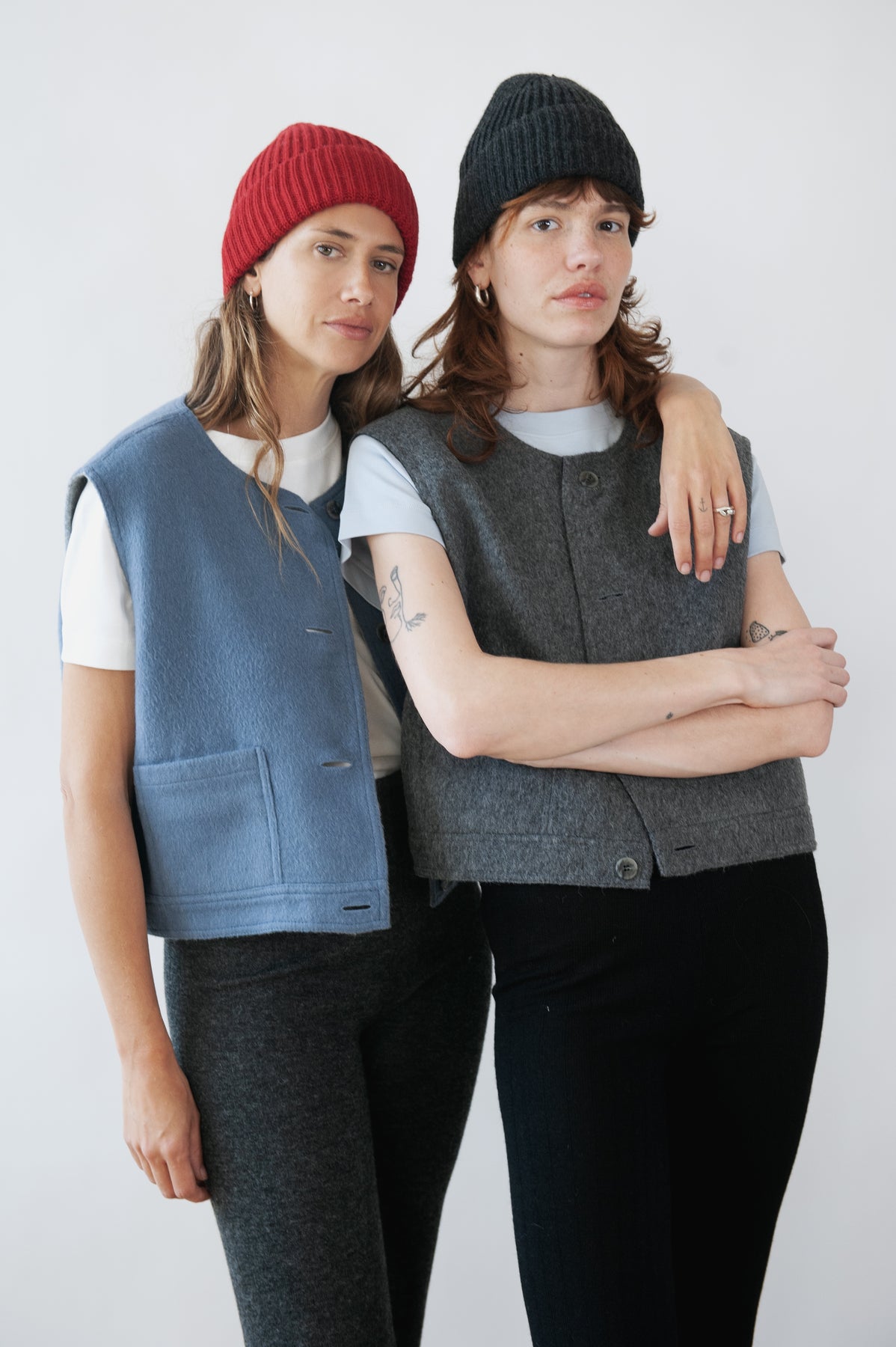 LOUIS VEST is part of our reversible line made of a baby alpaca and wool blend. It features a round neckline, two pockets, and button closure. With its reversible design, you can switch between colours to suit your mood and fit.
