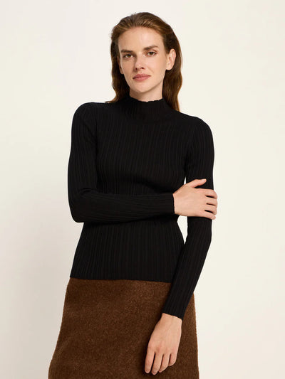 This ribbed sweater made of pure organic cotton impresses with its fine texture, pleasant warmth, and shape-retaining quality. The slim fit with a round neck and subtly accentuated hems makes it a versatile basic—ideal for layering under blazers or cardigans, but also a timeless piece worn solo. Vegan-friendly and GOTS-certified.